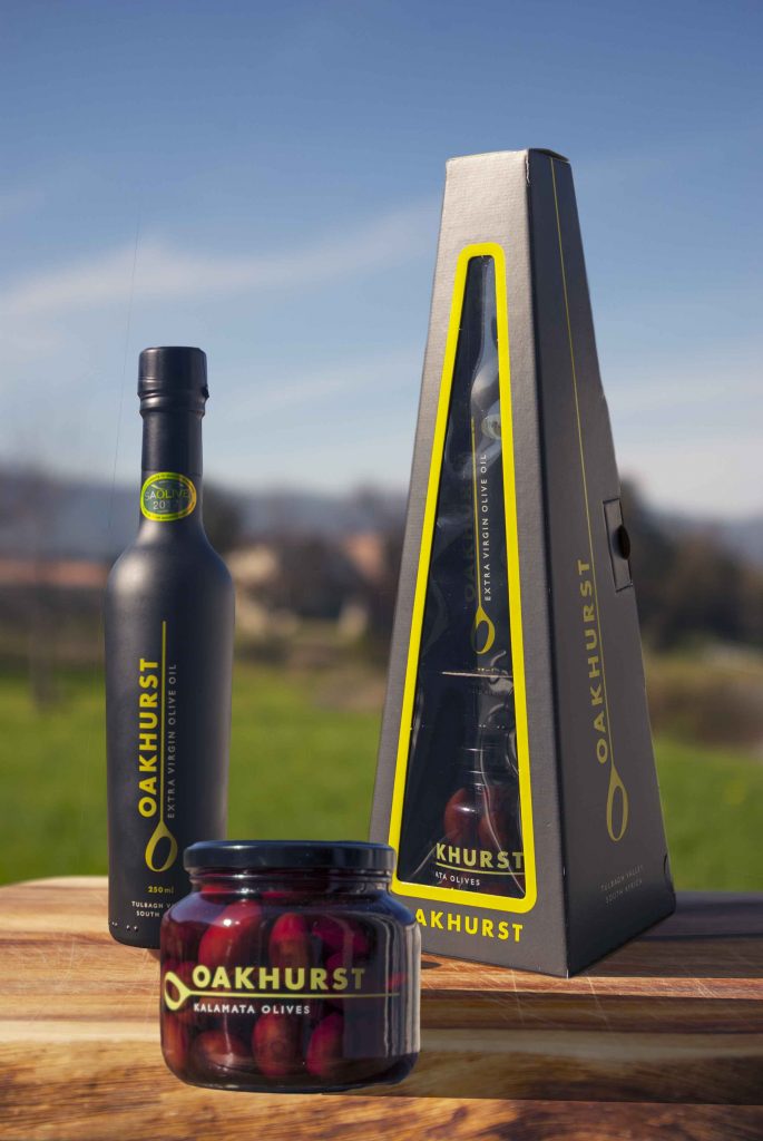 Oakhurst Extra Virgin Olive oil (375ml) and a glass jar (280g) of our delicious Kalamata Olives in a beautiful gift box.